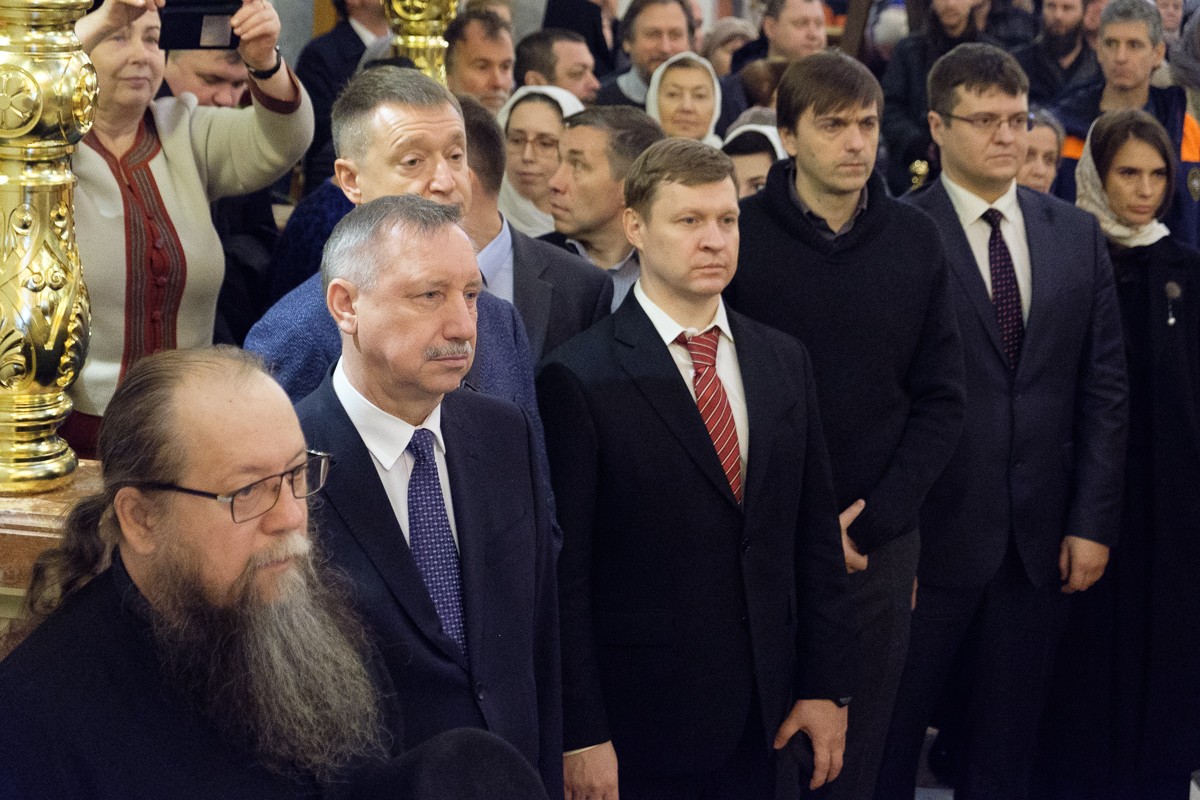 В храме присутствовали и.о. губернатора Санкт-Петербурга Александр Беглов, глава Администрации Московского района Владимир Ушаков.