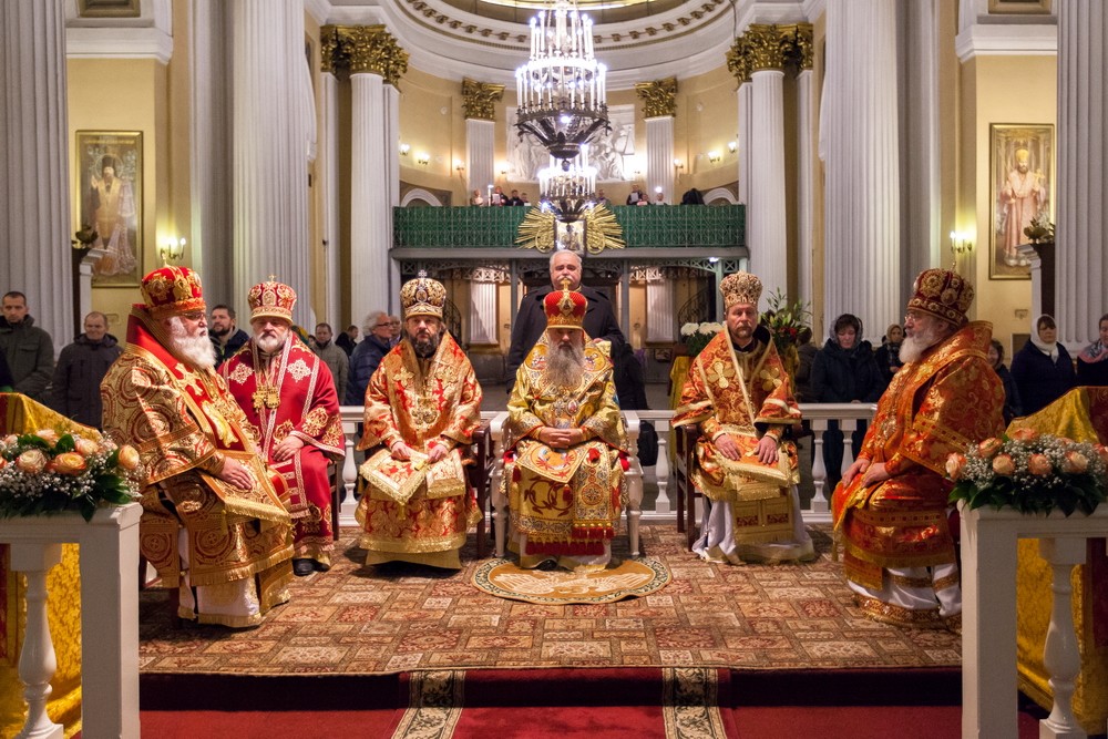 Его Высокопреосвященству сослужили архиепископы Петергофский Амвросий, Йоэнсууский Арсений, епископы Кронштадтский Назарий, Тихвинский и Лодейнопольский Мстислав, Сарапульский и Можгинский Антоний, секретарь епархиального управления протоиерей Сергий Куксевич, братия монастыря в священном сане, духовенство епархии.