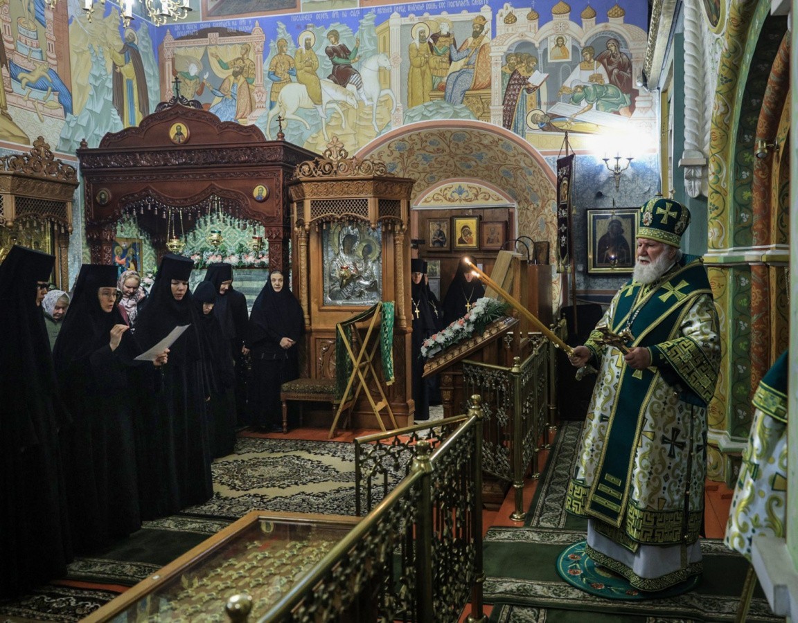 Митрополит Вадим поблагодарил сестер Толгской обители вместе с игуменией Варварой за исполнение богослужебных песнопений.