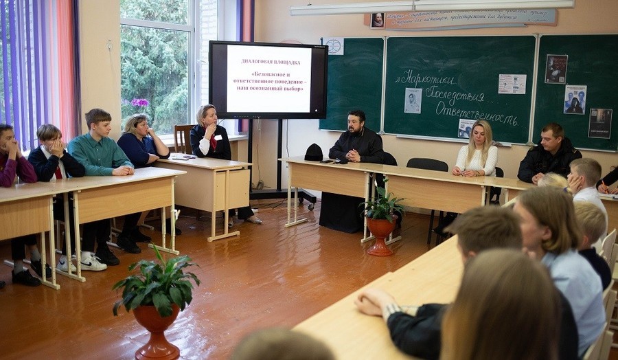 Эксперты обсудили со школьниками наиболее актуальные вопросы, касающиеся наркомании и наркозависимости. Игумен Авксентий в своем выступлении рассказал о христианском взгляде на проблему наркомании. Он отметил основную причину обращения к наркотикам – духовную опустошенность и искаженное представление о счастье и смысле жизни, при которых происходит подмена вечных христианских ценностей ценностями временными, не способными удовлетворить человеческую личность, особенно в юности.