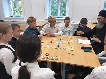Игумен Варсонофий (Чугунов), насельник Троицкого Антониево-Сийского мужского монастыря, познакомил учеников классов Русской классической школы в Архангельске с исторической игрой «Монастыри».