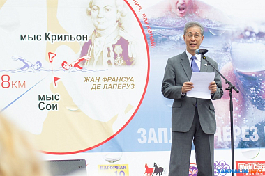 Спортсменов приветствовали председатель Сахалинской областной Думы Андрей Алексеевич Хапочкин, генеральный консул Японии в Южно-Сахалинске Рюити Хирано, председатель межрегиональной ассоциации холодового плавания России, рекордсмен мира и России по ледяному плаванию Александр Викторович Брылин, другие официальные лица.