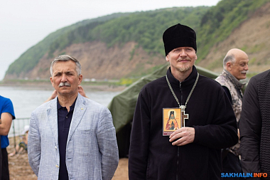 Благословляя участников второго этапа Заплыва, игумен Свято-Покровского града Корсакова мужского монастыря Серафим (Скипин) передал Александру Брылину икону равноапостольного святителя Николая Японского, Николая-До, как уважительно называли его японцы: