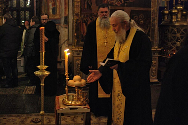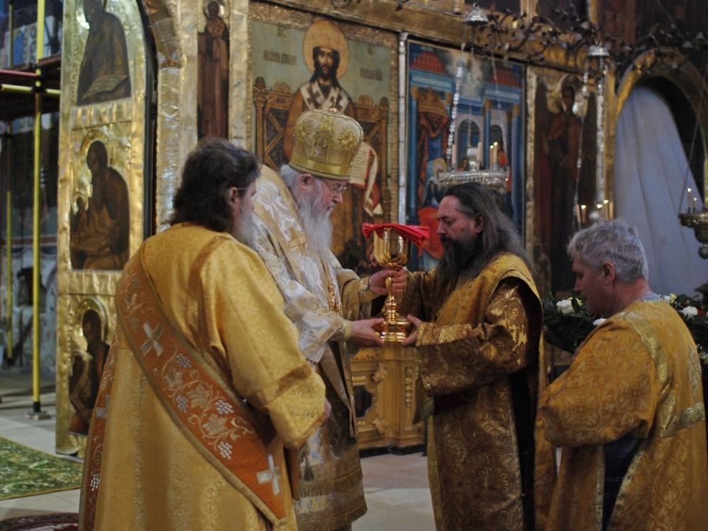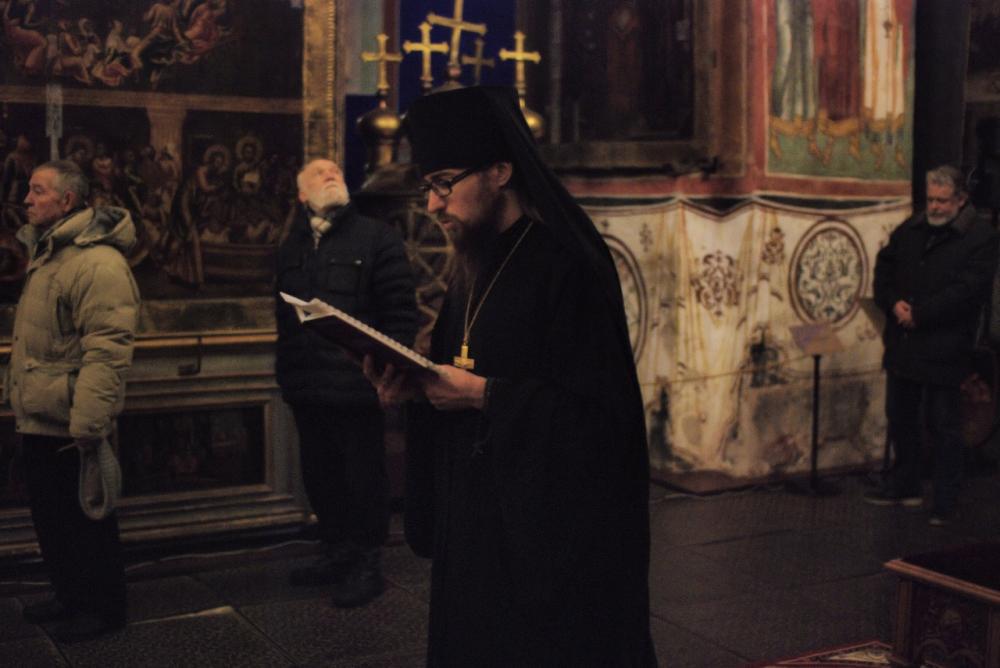 В своем слове по запричастном стихе настоятель Спасо-Евфимиева монастыря иеромонах Арсений поздравил собравшихся с днем памяти митрополита Илариона и напомнил некоторые эпизоды жития святого.
