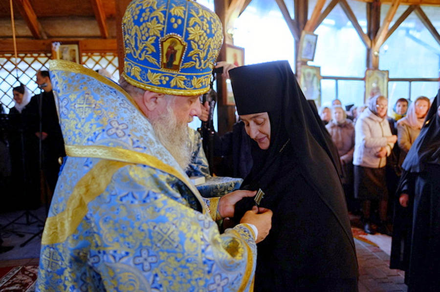 По совершении Божественной литургии и крестного хода архиепископ Иоанн в связи со знаменательными событиями в жизни обители наградил настоятельницу монастыря игумению Александру (Жарин) юбилейной медалью Белорусской Православной Церкви «1030-летие Православия на белорусских землях».