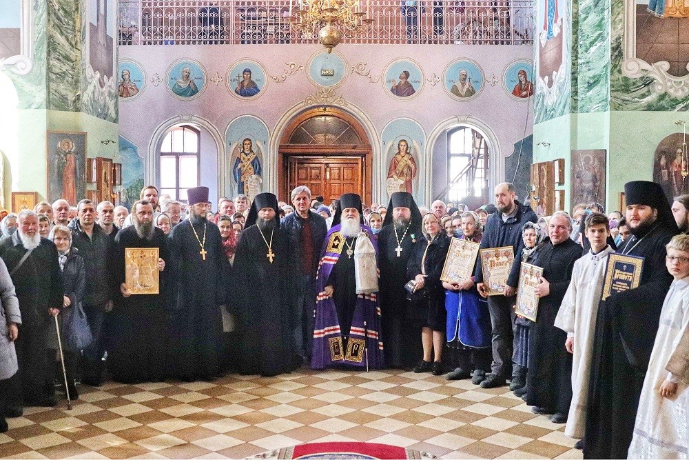 Его Преосвященству сослужили благочинный монастырей Московской областной епархии игумен Евмений (Лагутин), игумен Гуслицкого монастыря Серафим (Голованов), братия монастыря в священном сане.