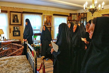 Хранительница этой святыни, полностью воссоздающей облик и дух дома епископа Афанасия, старшая сестра Афанасьевского архиерейского подворья Казанского женского монастыря монахиня Еввула, рассказала о жизненном пути святителя и приняла дивеевских паломниц так тепло, что они в полной мере смогли ощутить любовь хозяина этого дома, который 33 года своей жизни провел в сталинских тюрьмах и лагерях ни разу не возроптал, не озлобился и не пришел в уныние. Каждый раз, возвращаясь с допросов после долгих избиений, первым делом он принимался благодарить Господа.