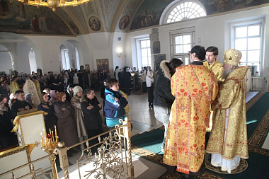 5 февраля 2017 года, в Неделю о мытаре и фарисее, Собора новомучеников и исповедникков Церкви Русской, Божественную литургию в храме Покрова Божией Матери Казанского женского монастыря города Ярославля совершил митрополит Ярославский и Ростовский Пантелеимон в сослужении клириков обители.