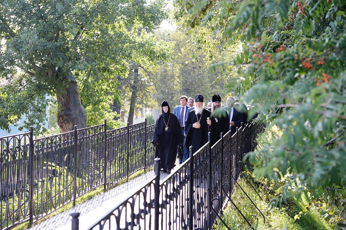 После праздничной монастырской трапезы, организованной в трапезном храме Святого Александра Невского, Святейший Патриарх Московский и всея Руси Кирилл посетил Канавку Божией Матери.