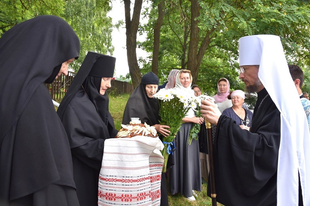 Во время Литургии были вознесены сугубые молитвенные прошения о восстановлении мира. По окончании богослужения митрополит Вениамин и сослужащее ему духовенство совершили славление иконы Пресвятой Богородицы «Тихвинская». Далее Патриарший экзарх обратился к собравшимся со словом назидания. В завершение архипастырь поздравил собравшихся с престольным праздником обители, причастников с принятием Святых Христовых Таин и преподал всем благословение.
