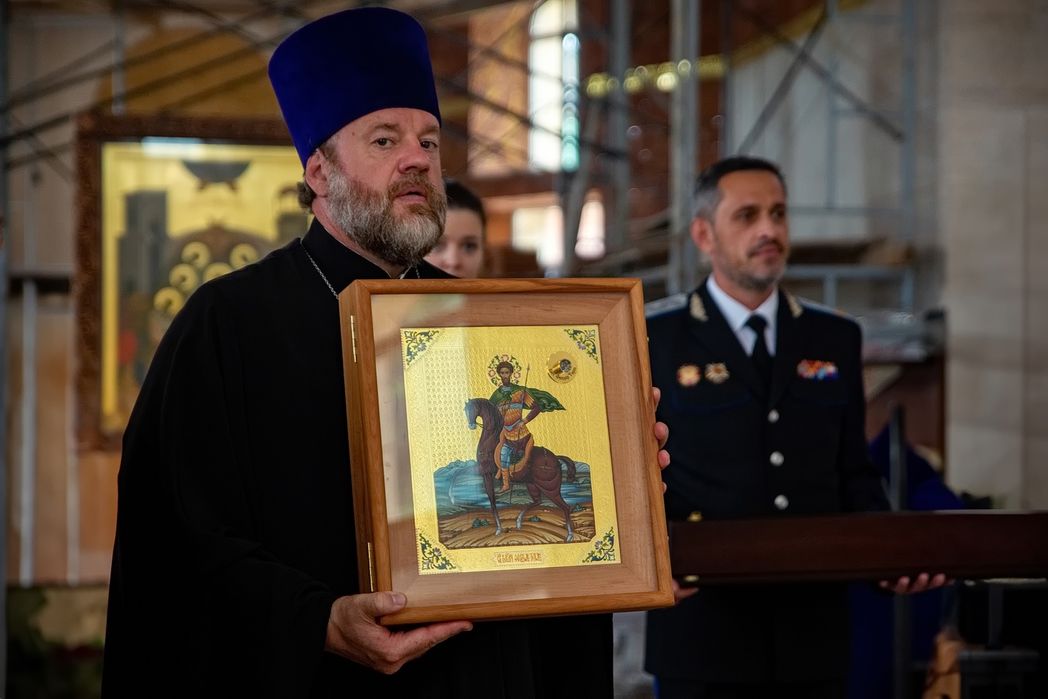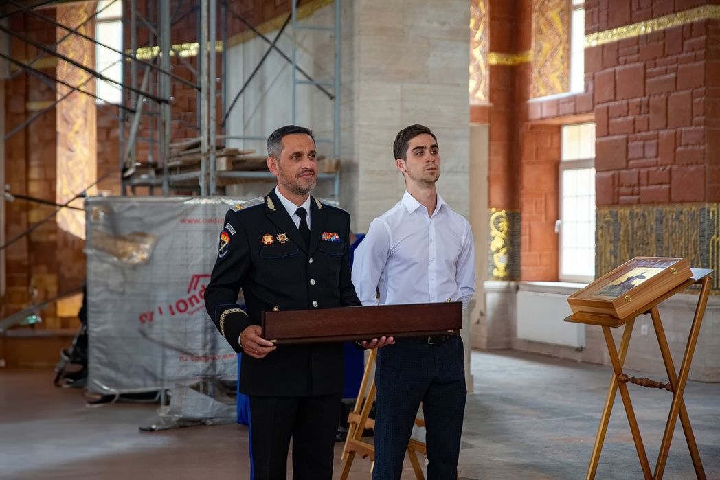 Образы принял священноархимандрит обители архиепископ Пятигорский и Черкесский Феофилакт. «Сегодня в нашей обители благодаря вам, дорогой Юрий Яковлевич, появляется еще несколько удивительных икон. Особенно знаково и памятно, что среди этих икон образы и Феодора Стратилата, и Феодора Тирона – святых воинов, молитва которым так важна сегодня, в непростое время испытаний нашего Отечества», – отметил архиепископ Феофилакт.