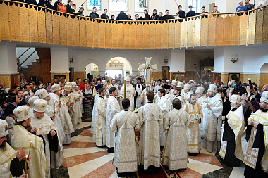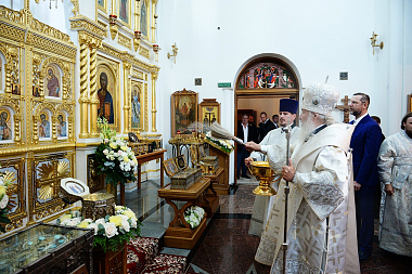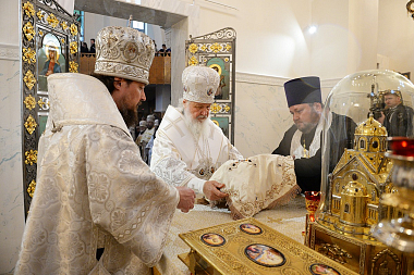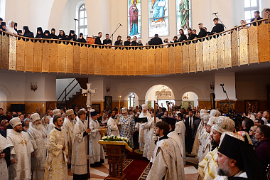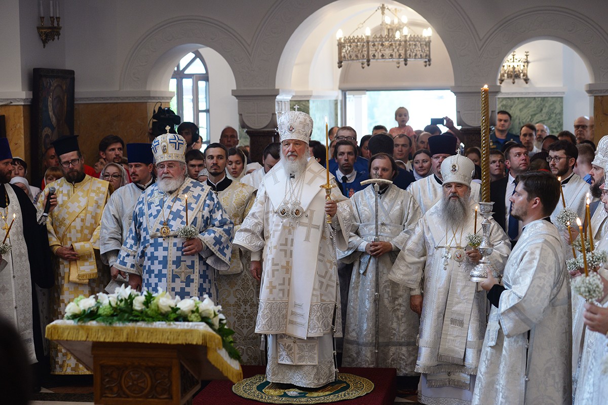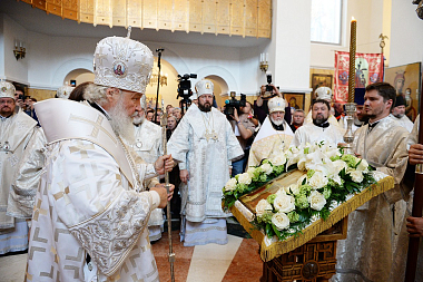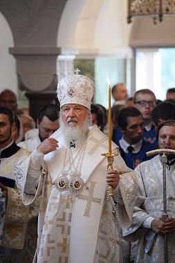 Предстоятель Русской Православной Церкви совершил чин малого освящения храма Похвалы Пресвятой Богородицы и утреню всенощного бдения в новоосвященном храме.
