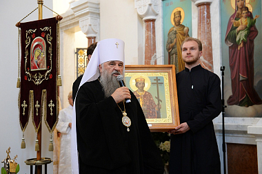 Я хотел бы обратить особые слова благодарности в адрес Константина Вениаминовича, ктитора сей святой обители, который много сил и материальных средств отдает на то, чтобы строились и восстанавливались храмы. Я благодарю Вас, Константин Вениаминович, за то, что Вы сделали здесь, на родной для меня земле. Пусть Господь хранит Вас, помогая в Ваших трудах, хранит Ваших родных и близких, чтобы не пресекалась благостыня, которая через Вас произливается на многих людей, на храмы, монастыри, чтобы не оскудевала рука дающего. Хотел бы также сердечно поблагодарить матушку игумению за труды, которые Вы здесь совершаете.