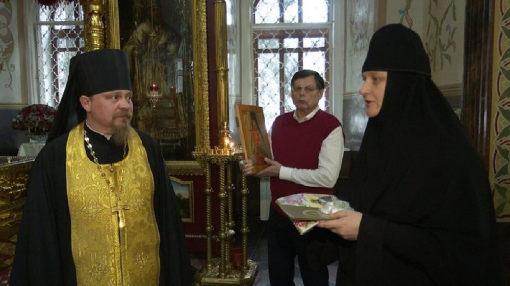 Насельницы монастыря передали на память Анне Линз буклет об истории монастыря, платок и масло, освященные у мощей святителя Иннокентия.