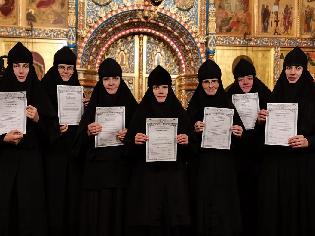 Выпускной итоговый зачет состоялся 7 мая 2022 года. 22 мая в Черноостровском монастыре свидетельства были переданы настоятельницам женских монастырей, скитов и подворий, сестры из которых завершили обучение – настоятельнице Казанского девичьего монастыря игумении Анастасии (Мордмиллович), настоятельнице женского монастыря в честь Калужской иконы Божией Матери игумении Параскеве (Ляховой), настоятельнице Свято-Успенского Лихвинского женского монастыря с. Гремячево игумении Михаиле (Осиповой) и другим.