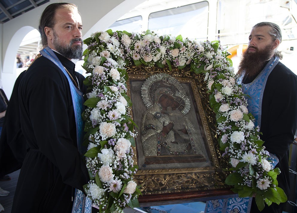 Почитаемый список Толгской иконы Божией Матери находился в Успенском кафедральном соборе города Ярославля с недели Жен-Мироносиц. Перед возвращением в обитель у иконы в последний раз совершили Литургию и молебен.