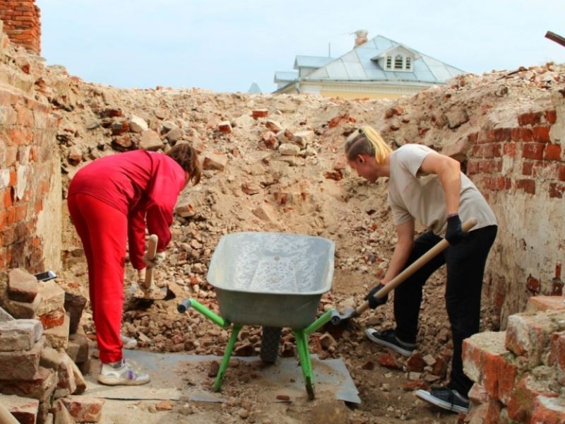 Шесть юношей и три девушки прибыли на остров по договоренности с директором АНО «Наследие» Надеждой Плигиной. На острове студенты проведут две недели. Их задача – разобрать кирпичи, которые остались после взрыва Спасо-Преображенского собора. Молодежь также помогает монастырю в повседневных делах.