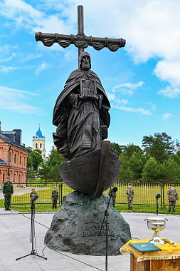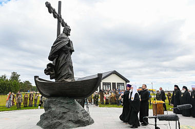 В этот же день Святейший Патриарх Московский и всея Руси Кирилл освятил памятник преподобному Арсению Коневскому, созданный к 625-летию обители и установленный у центрального причала острова Коневец.