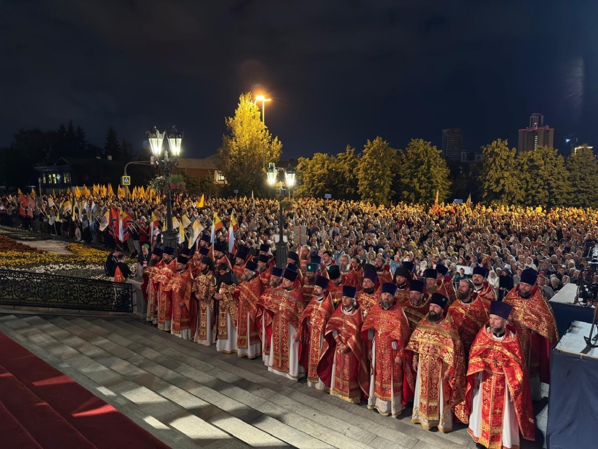 Днем в Екатеринбурге прошел традиционный Малый крестный ход по Екатеринбургскому Пути скорби – местам, хранящим память о Царственных страстотерпцах. Одно из центральных событий Царских дней объединило более тысячи паломников, прибывших из разных уголков страны, и жителей города, в числе которых воспитанники воскресных школ, добровольцы Царских дней. Возглавили молитвенное шествие руководитель епархиального отдела религиозного образования и катехизации иерей Андрей Щукин и другие священники Екатеринбургской митрополии – духовники церковно-приходских школ. У поклонного креста на железнодорожной станции Шарташ участники соборно прочитали акафист Царственным страстотерпцам, после чего отправились крестным ходом по пути прибытия Царственных страстотерпцев до Храма-памятника на Крови с остановками для молебна у храма иконы Божией Матери «Порт-Артурская» и храма Державной иконы Божией Матери. Малый крестный ход завершился молебным пением в Храме-памятнике на Крови.