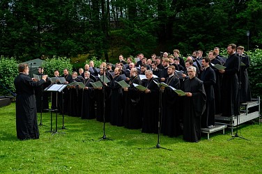 Песнопения Литургии исполнил сводный хор Санкт-Петербургской и Псковской митрополий под управлением Юрия Герасимова.