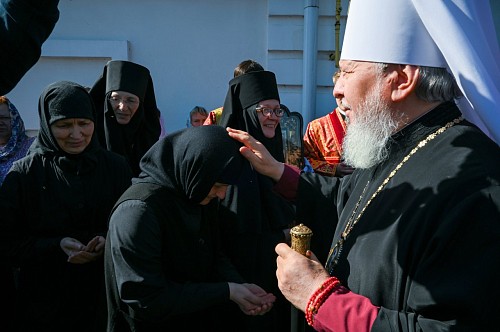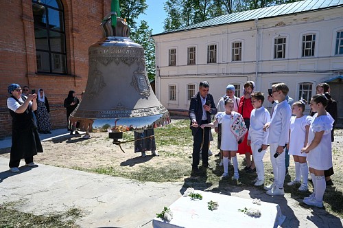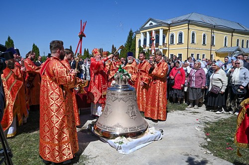 По окончании Литургии митрополит Александр возглавил крестный ход вокруг Никольского собора. Затем владыка совершил чин освящения главного колокола – благовестника, изготовленного на колокольном заводе Андрея Дьячкова в городе Тутаеве Ярославской области. Вес колокола составляет 800 килограммов. Он украшен рельефными изображениями иконы «Нерукотворный образ Господа нашего Иисуса Христа», иконы Божией Матери «Споручница грешных», святителя Николая Чудотворца и царя-страстотерпца Николая II. Также на колоколе выбиты имена правящего архиерея, настоятельницы монастыря и благодетелей.