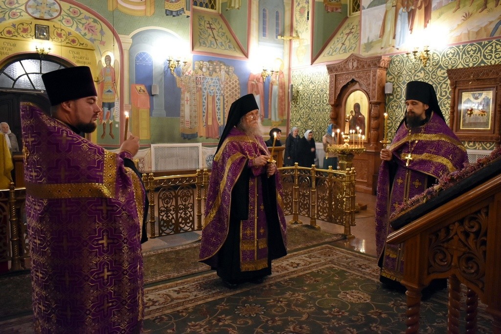 По окончании богослужения было совершено славление нижегородским священномученикам и при пении тропаря и кондака праздника Воздвижения Честный Крест был внесен в алтарь.