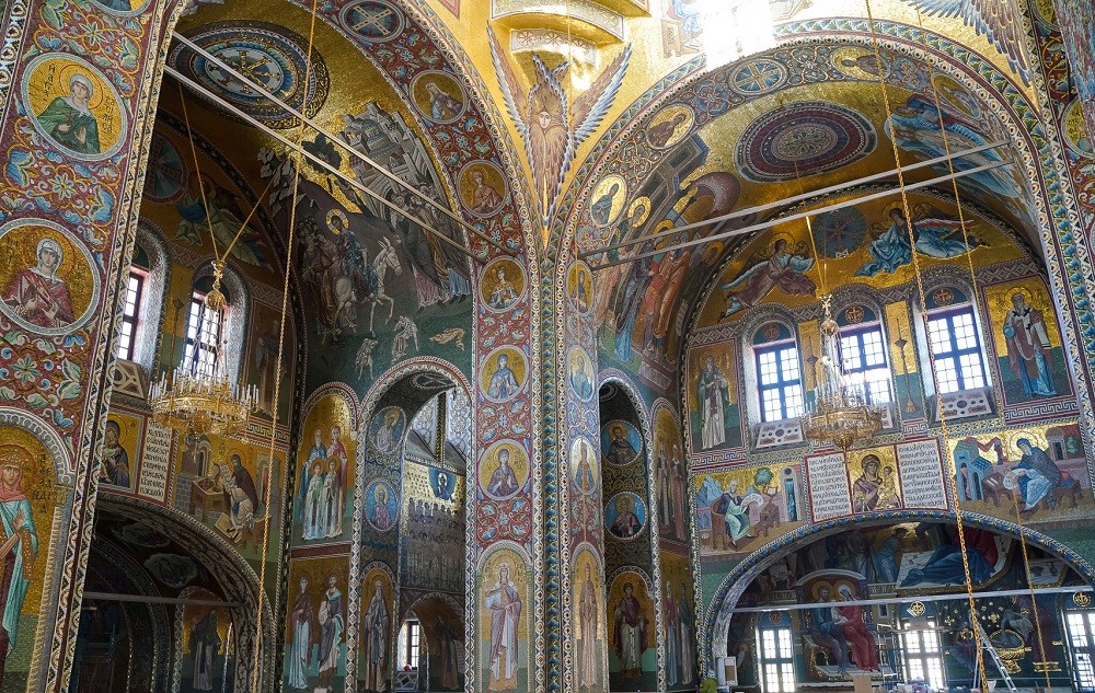 Мозаичное убранство в верхнем Благовещенском храме собора выполнено на площадях более 5000 квадратных метров.