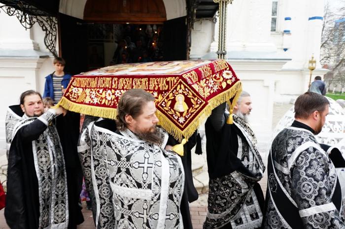 Вечером 26 апреля 2019 года, в канун Великой Субботы, наместник Богородичного Щегловского мужского монастыря г. Тулы архимандрит Клавдиан (Ларьков) с братией обители в священном сане совершил в соборном храме в честь иконы Божией Матери «Млекопитательница» утреню с чином погребения Господа нашего Иисуса Христа.