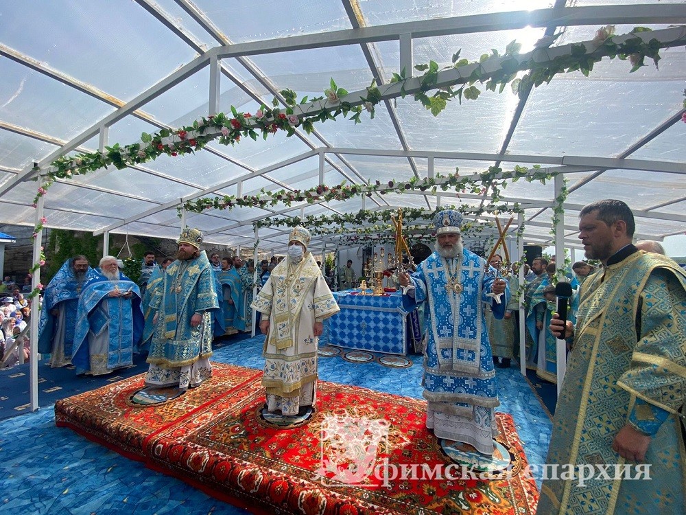 За Литургией митрополиту Уфимскому и Башкортостанскому Никону сослужили епископ Салаватский и Кумертауский Николай, епископ Бирский и Белорецкий Спиридон, настоятели мужских монастырей Башкортостанской митрополии, благочинные и сонм духовенства. Диаконский чин возглавил первый соборный протодиакон Уфимской епархии Максим Коробицын.