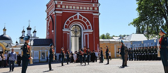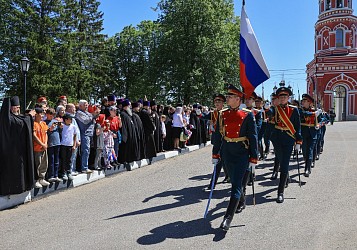 Ученики воскресной школы и хор монастыря пропели вечную память усопшим воинам и возложили цветы к памятнику. После чего под звуки марша парадным строем прошли кремлевская рота почетного караула и курсанты Серпуховского ракетного училища.