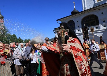 В Его Высокопреосвященству сослужили настоятель монастыря игумен Сергий (Куксов), настоятель Пешношского монастыря игумен Алексей (Горлычев), настоятель Борисоглебского монастыря игумен Августин (Шорников), клирики Подольской епархии, братия обители в священном сане.