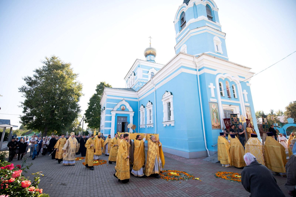По окончании Литургии состоялся крестный ход вокруг храма со святыми мощами праведного Иоанна Кормянского.