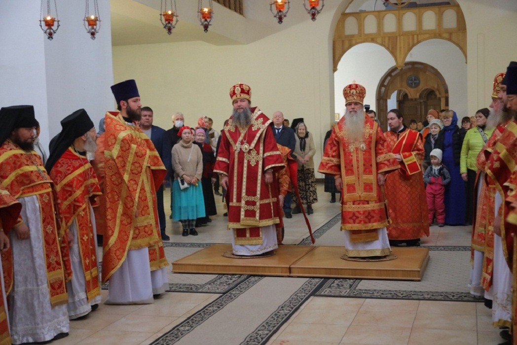 Его Высокопреосвященству сослужили: епископ Каменский и Камышловский Мефодий; секретарь Екатеринбургской епархии, митрофорный протоиерей Николай Малета; настоятель мужского монастыря Новомучеников и исповедников Церкви Русской игумен Моисей (Пилатс); и.о. руководителя миссионерского отдела Алапаевской епархии иеромонах Серафим (Шанин); братия обители в священном сане; клирики Алапаевской епархии.