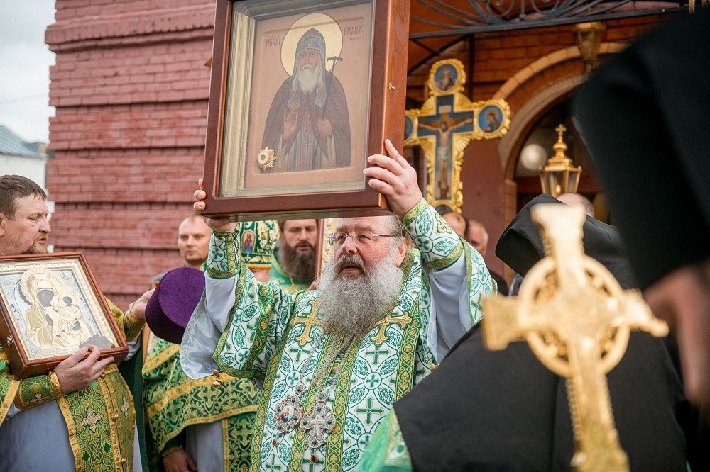 Его Высокопреосвященству сослужили секретарь Татарстанской митрополии иеромонах Кирилл (Корытко), настоятель Седмиезерной пустыни архимандрит Герман (Кузьмин), наместник Раифского Богородицкого монастыря игумен Гавриил (Рожнов), наместник Казанского Богородицкого монастыря игумен Марк (Виленский), насельник Казанской Богородицкой обители иеромонах Аркадий (Логинов), настоятель Иоанно-Предтеченского монастыря Казани иеромонах Гурий (Ананьев), настоятель Вознесенского Макарьевского монастыря иеромонах Амвросий (Горновский), настоятель храма Тихвинской иконы Божией Матери поселка Вознесенское протоиерей Сергий Степанов, настоятель храма праведного Иоанна Кронштадтского при Казанской духовной семинарии иеромонах Алексий (Яцейко), насельники Седмиезерной пустыни в священном сане.
