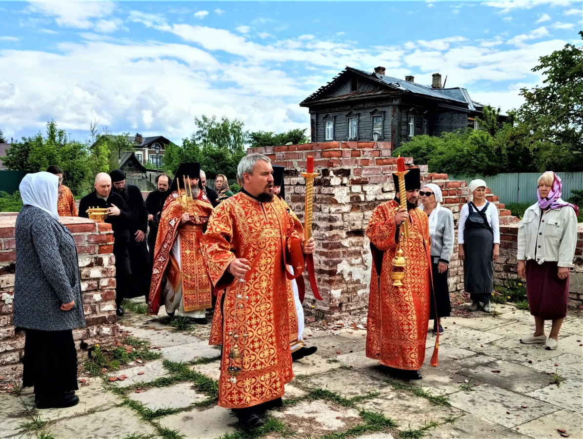 По окончании богослужения духовенство и прихожане Успенского монастыря прошли крестным ходом от обители до руин приходской Никольской церкви. На месте утраченного храма было совершено молебное пение.