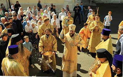 14 августа 2024 года, в день Происхождения Честных Древ Животворящего Креста Господня, празднества Всемилостивому Спасу, архиепископ Подольский и Люберецкий Аксий возглавил престольные торжества в Вознесенской Давидовой пустыни.