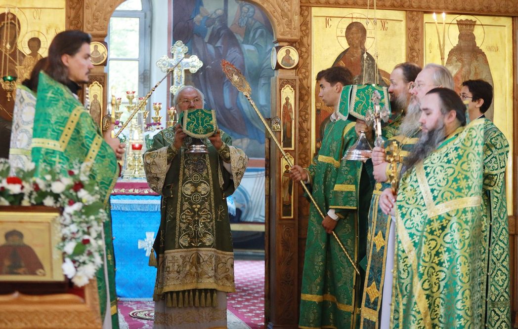 Его Преосвященству сослужили благочинный монастырей игумен Серафим (Котенёв), настоятель монастыря игумен Серафим (Семилетов) и братия обители в священном сане.