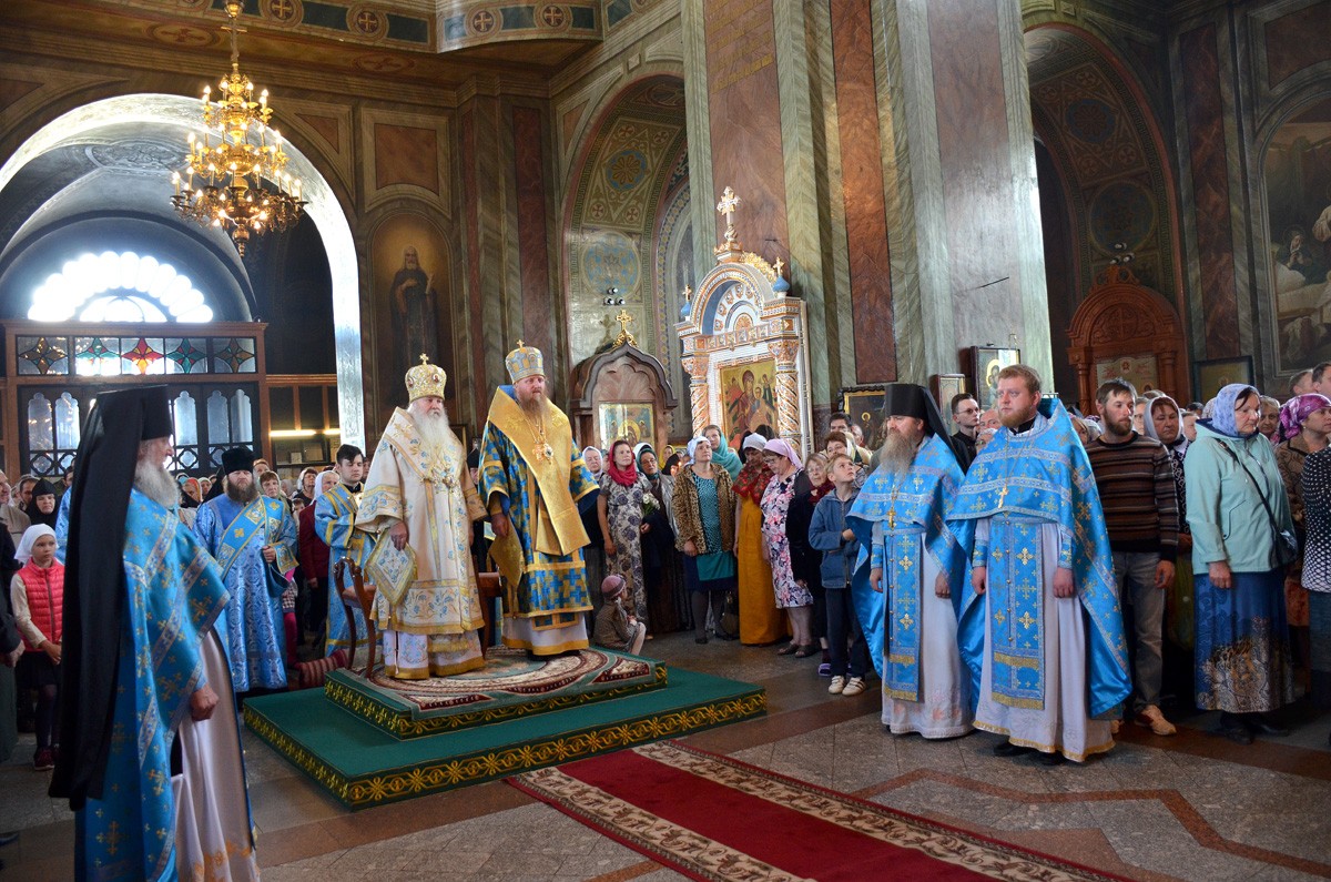 По случаю престольного праздника глава Липецкой митрополии возглавил совершение праздничного молебна Пресвятой Богородице с крестным ходом вокруг собора.