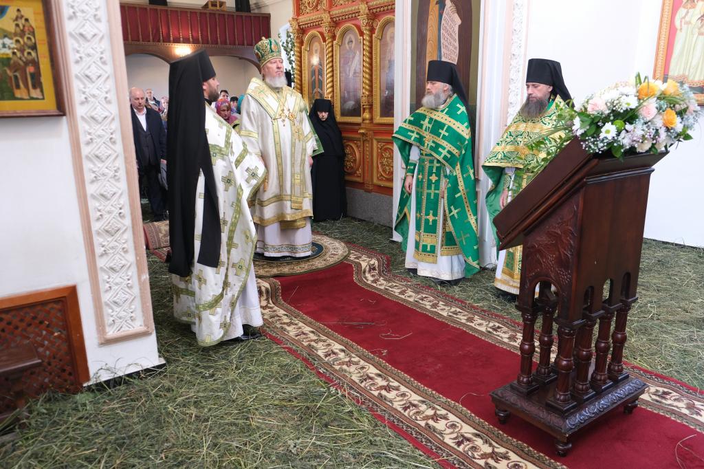 По окончании Литургии владыка Александр в честь престольного праздника возглавил крестный ход вокруг Свято-Духовского храма и возрожденного Казанского собора. В завершении молитвенного шествия Его Высокопреосвященство вознес молитву Святому Духу.