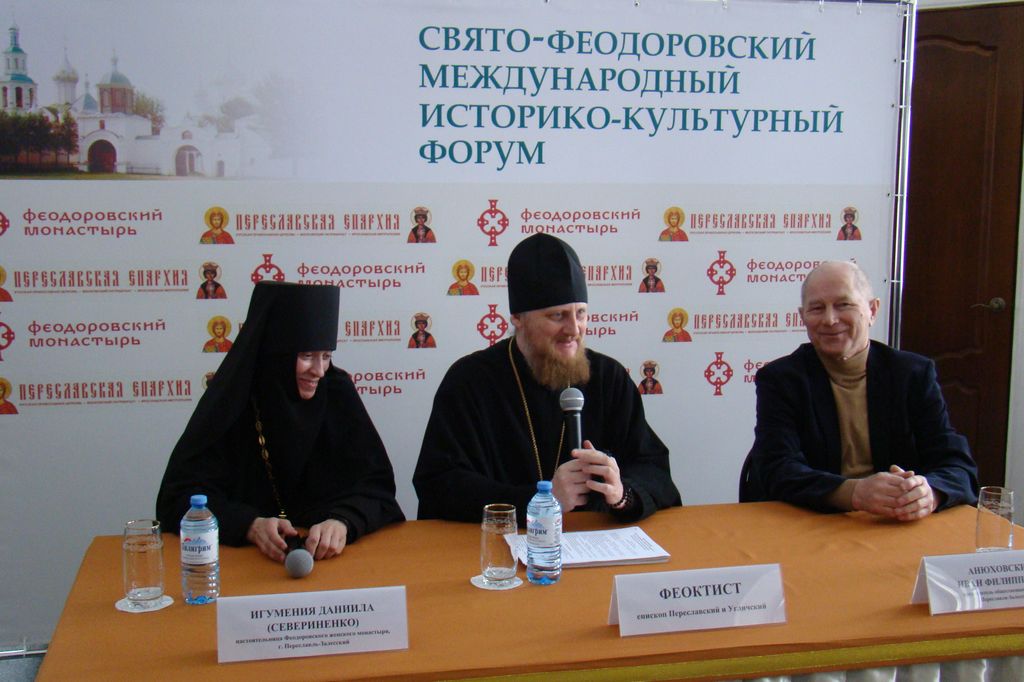 Круглый стол, который предварила пресс-конференция с участием местных и федеральных СМИ, стал первым мероприятием Свято-Феодоровского историко-культурного форума, в этом году посвященного 1700-летию подвига великомученика Феодора Стратилата и 715-летию основания Феодоровского женского монастыря. Организаторы мероприятия выступили Переславская епархия Русской Православной Церкви и Феодоровский женский монастырь г. Переславля-Залесского.