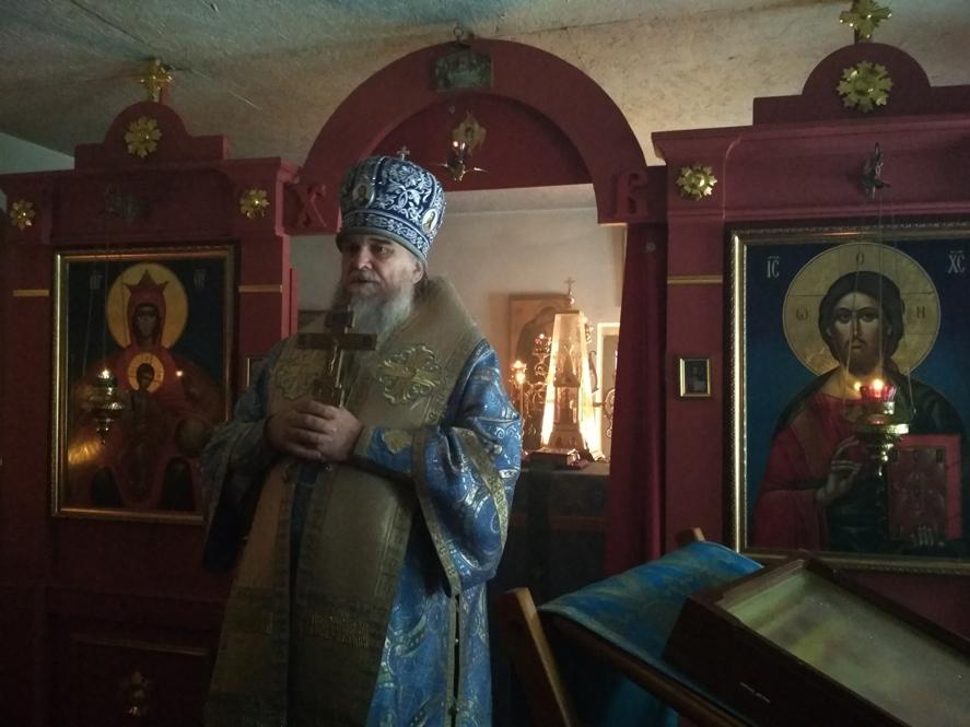Его Преосвященству сослужили благочинный Пречистенского округа протоиерей Иоанн Грибин и настоятель Спасского храма с. Кукобой протоиерей Александр Медведев.
