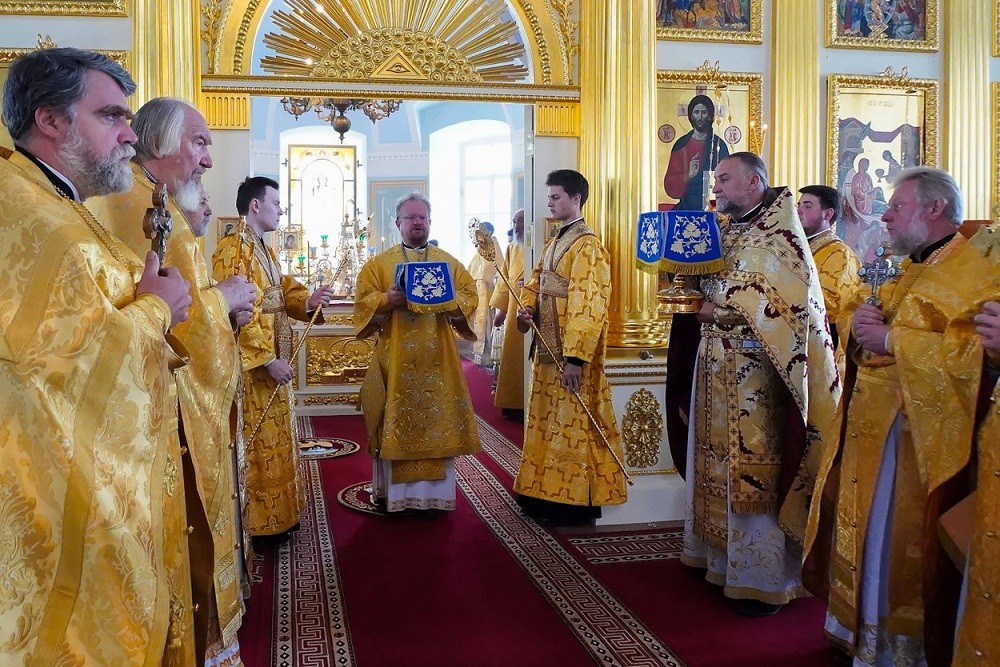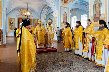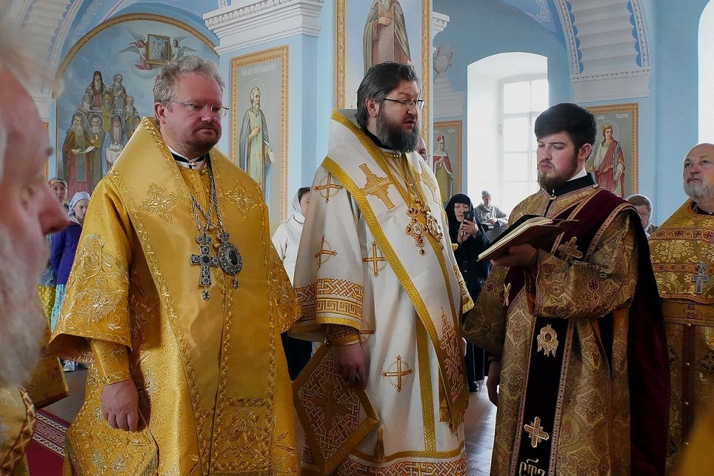 В Рождество-Богородичном соборе обители Преосвященнейшим владыкам сослужил наместник монастыря архимандрит Александр (Арва), настоятель Петербургского подворья монастыря иеромонах Давид (Алексеев), братия монастыря в священном сане, клирики Выборгской и Рославльской епархий.