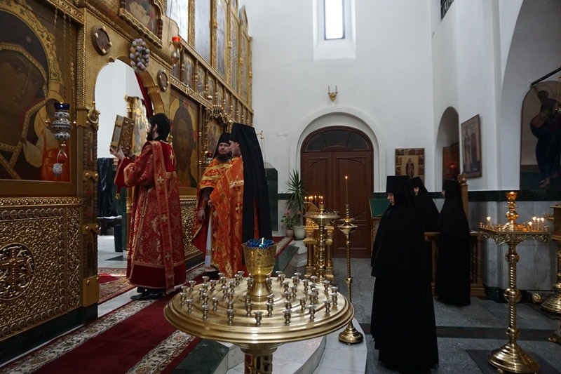 За богослужением молились настоятельница монастыря игумения Неонилла (Кузьмина) с сестрами. Богомольцы-миряне слушали службу по аудиотрансляции во дворе в связи с карантином из-за коронавирусной инфекции. При совершении богослужений в обители соблюдаются все рекомендованные врачами санитарно-гигиенические нормы.