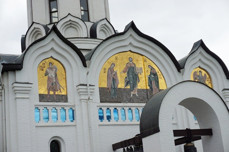 На монастырском подворье вмч. Георгию Победоносцу посвящена часовня-колокольня, главную икону которой в 2017 году создал иконописец Валерий Поляков: на иконе святой Георгий изображен на белом коне, побеждающим древнего змия – диавола.