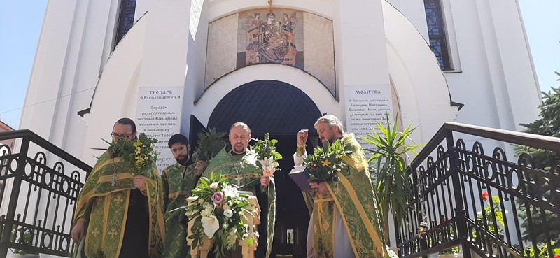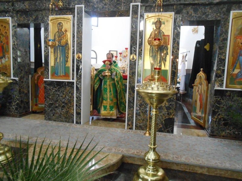 Накануне было совершено всенощное бдение, утром в день праздника – Божественная литургия, 9-й час и великая вечерня с тремя коленопреклонными молитвами, а вечером читался акафист Святой Троице.