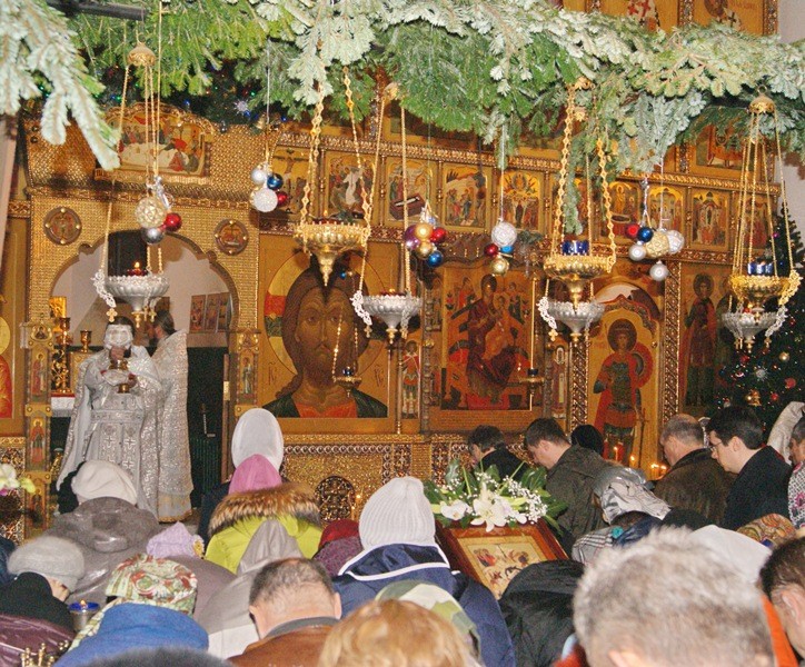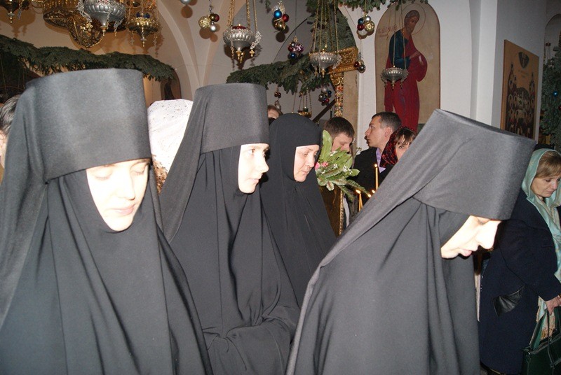 Под византийское пение сестринского хора в убранном рождественскими украшениями главном храме монастыря были совершены всенощное бдение и Божественная литургия. После всенощного бдения состоялся крестный ход вокруг обители. Поскольку на богослужении присутствовало много людей, а погода была теплой, ночная Литургия транслировалась во дворе, где тоже молились прихожане. Во дворе перед храмом сестры устроили и украсили рождественский вертеп.