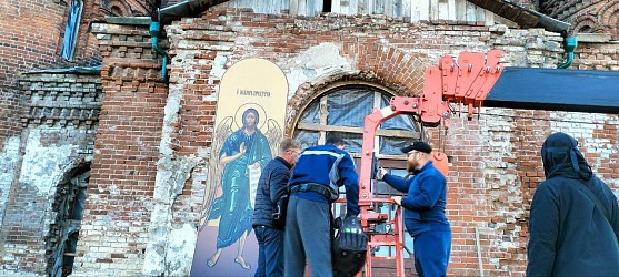 Иеромонах Кирилл произнес слова благодарности местной рекламной компании «Успех» за изготовление образа из высокопрочного композитного материала, доставку и установку иконы.