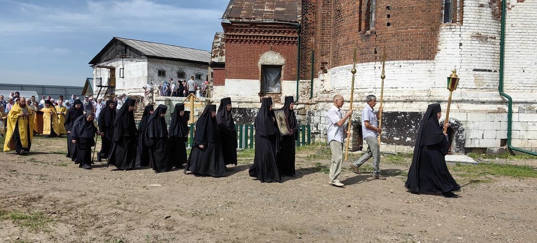 По окончании богослужения был совершен крестный ход вокруг храма. Монахини с иконой Иоанна Крестителя возглавили праздничное шествие.