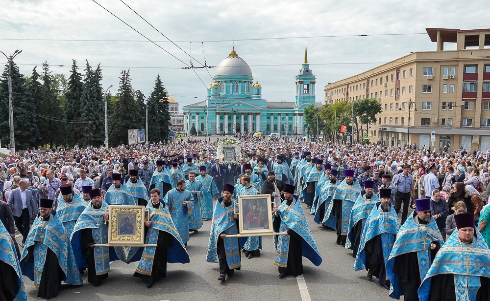 Под колокольный звон из собора вынесли икону Божией Матери «Знамение» Курскую-Коренную. Архипастырь благословил святым образом Богородицы Курск на четыре стороны света и многотысячное шествие начало свой путь по центру города к Введенскому храму. На всем пути к крестному ходу присоединялись новые паломники.