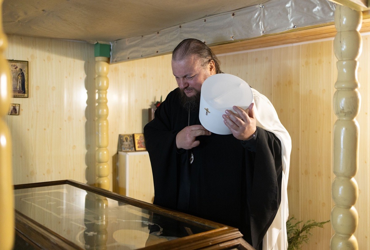 В крипте Макариевского храма Высокопреосвященный владыка и духовенство совершили славление преподобному Макарию Писемскому и поклонились мощам святого.